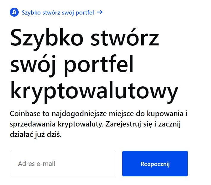 1. Wejdź na stronę giełdy Coinbase i na pierwszej stronie wpisz swój adres e-mail i kliknij Rozpocznij.