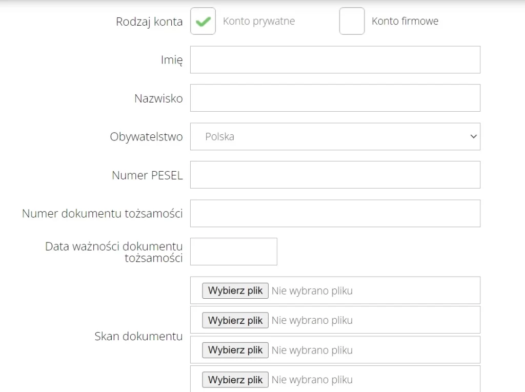 5. Uzupełniasz wymagane dane osobowe i adresowe oraz dołączasz skan dokumentu tożsamości.